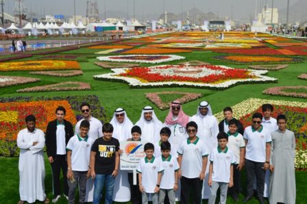 القسم المتوسط : قائد المدرسة يتقدم مجموعة من الطلاب في زيارة لمهرجان الزهور الأول والأكبر بمكة المكرمة و المقام مزدلفة