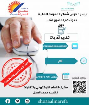 يعقد بمشيئة الله تعالى غدا الثلاثاء الموافق 24/4/1442هـ لقاء حول تقرير الدرجات في برنامج التعلم عن بعد ” كلاسيرا