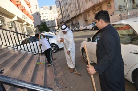 بمناسبة اليوم العالمي للتطوع قام نخبة من طلاب الفريق التطوعي بالقسم المتوسط بتنظيف الشوارع المحيطة بالمدرسة وذلك بهدف توعية الطلاب بعدم إلقاء القمامة في الشوارع و تجميعها في الأماكن المخصصة لذلك والمحافظة على أطهر البقاع ،شارك في المبادرة رائد النشاط أ.رضوان الشريف