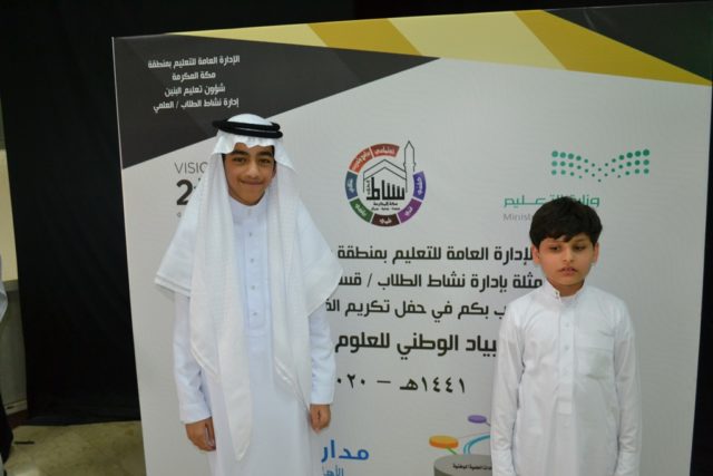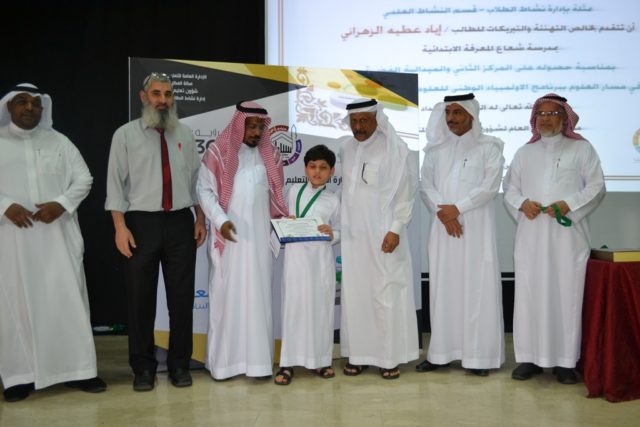 تكريم الطالب اياد عطية الزهراني لحصوله على المركز الثاني في مسابقة أولمبياد العلوم على مستوى تعليم مكة المكرمة في حضور قائد المدرسة ومعلم العلوم بإدارة نشاط تعليم مكة المكرمة