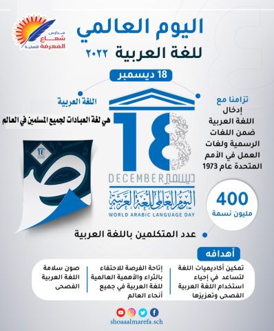 اليوم العالمي للغة العربية السيد البطل مدير الموقع 2022/12/18 غير مصنف تصفّح المقالات Previous Previous post: مسابقة العالم الصغيرNext Next post: أهلا فرسان الرؤية