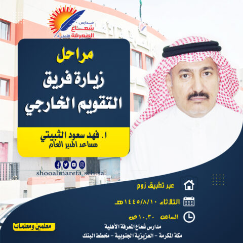 مراحل زيارة فريق التقويم الخارجي السيد البطل مدير الموقع 2024/03/03 غير مصنف تصفّح المقالات Previous Previous post: فوز الطالب نضال السيد جابر بمسابقة القرآن الكريمNext Next post: تعليمات هامة