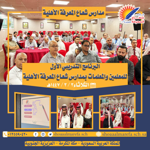 البرنامج التدريبي الأول للمعلمين والمعلمات السيد البطل مدير الموقع 2025/08/28 غير مصنف تصفّح المقالات Previous Previous post: اللقاء الأول لمنسوبي ومنسوبات المدارس مع إدارة المدارسNext Next post: دوري كرة القدم بالقسم المتوسط