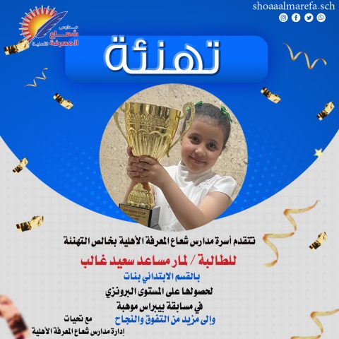تهنئة للطالبة لمار مساعد سعيد غالب السيد البطل مدير الموقع 2026/02/05 غير مصنف تصفّح المقالات Previous Previous post: تسليم كتب الترم الثانيNext Next post: اعتماد كوجنيا